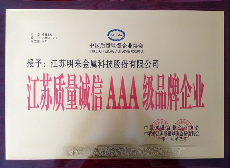 江苏质量诚信3A级品牌企业